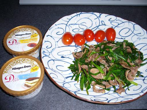 1パック200円で新鮮なものがあったので 98円のニラを買い・・・塩と生ニンニクを少し入れて味付けですんーーー ビールが美味しい あはブログのお友達のさぶさぶ~さんに勧められたハーゲンダッツのドルチェと只今にらめっこですどっちを食べよ~かな~ あは