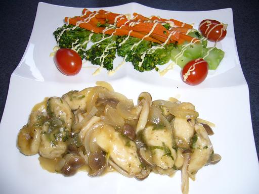 オリーブオイルでチキンを炒め塩コショウをしてタマネギ・塩茹でプロッコリー・ほんだし・みりん酒・水・バターを入れて最後にトマトを入れて出来上がり水の量を少しにしたので スープもどきです今日は久々のブラックタワー 白ワインですあは やっぱり 美味しい・・・