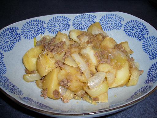 肉じゃがと呼んでいいのかな~~あは☆ じゃがじゃが が正しいかもオリーブオイルでひき肉を炒め生にくにく少しと塩コショウたまねきとジャガイモを入れて炒め水を入れてジャガイモが少し柔らかくなったらほんだし・みりん酒・赤酒・砂糖・醤油を好みで適量入れて煮えたら出来上がりひき肉でも意外に好みの味に仕上がりました食べ過ぎて少し苦しいです あは♪食欲復活です仕事も早退したり・・ 遅刻したり・・休んだりと今一でしたが・・・ だいぶ 身体が楽になって来たし・・・食欲も戻ってきたので 頑張れそーです寝すぎて身体が痛いので 明日から少しづつ動かなくては あは♪
