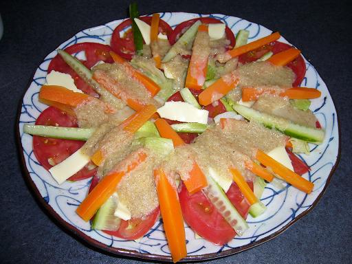 日向夏ごまドレッシングを買ってみたので サラダにしてみました見た目は食欲沸かないけど・・・食べたら意外にホント美味しい あはトマトと塩茹でにんじんとチーズときゅうりです☆今日は日本酒を頂きました 久保田の千寿です あは昨日に引き続き まだ足がつります痛い痛いと笑いながらチャレンジしてみましたがやっぱり 断念 スクワット?なるものをしても ツル足はどーしょうもありません"痛いの 痛いの 飛んでいけーーー"と おまじないも効きませんひたすら 足がつらないように 力を抜くのも 結構難しく痛いー と叫んでます あはは☆だれか もらってくれないかな~