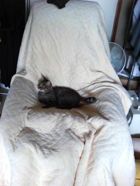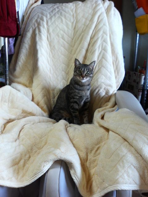マッサージ機がにとどいた娘の爪で イヤーンという事態をさけたかったのでカバーをかけたでも しっかりおくつろいでいらっしゃいます