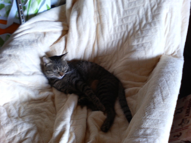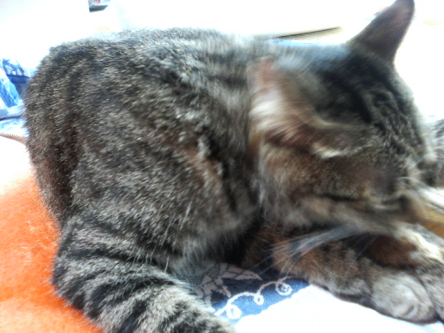 カーペットカバーをよごした掃除がてら取替えついでに動く毛皮も洗濯ストーブの前を陣取り なめなめしておられますこのあとの無駄毛を『ゲ~』するのがこわい~