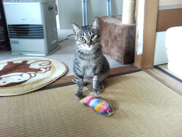 バザーで買った(*^^*)楽しんでもらえるかしら?と楽しみに帰ってきたが最初のくんかくんかで興味なし100円のおさかなより駄目だった(>_<)またたびも買ったので明日はまたたびをおさかなさんに♪(*^^*)