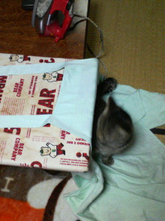 さっきまでラックの上でおくつろぎ(*^^*)だったのに・・・おふとんをひくお手伝いをしてくださるつもりなのか、いそいで降りていらっしゃいました( ̄▽ ̄;)おさと: あの~(--;)さくら: わしゃどかんで!う~ん (-_-)お手伝い?が好きなさくらさんでした(/--)/