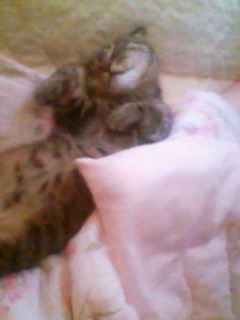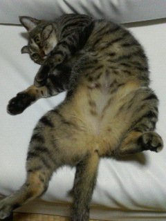 最近暑いのか一緒に寝ていただけなかったのですが久々に朝起きてふともも付近があついとおもったら寝ていた招き猫のようであるさらに・・・バンザーイである朝からおさとはとっても満足なのでした