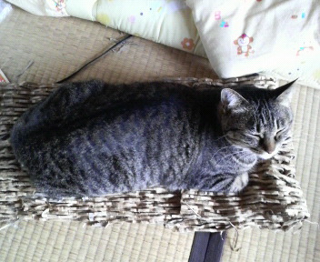 猫たちのごはんを購入したときにクッションのかわりに入っていた段ボールの刻んだもの?が気に入ったらしく くつろいでおられます(^^ゞ