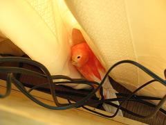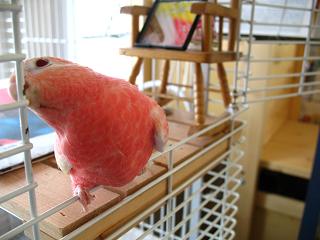 1時間半前に帰宅したのですが、友人がお腹が空いたというので近くのバーミヤンへ私はズーマー君、彼女はキャノピー君で行って来て、今帰宅したところ。今日はお祭りなので家の前の道に車を駐車しておけないからバイクの方が良いョと言ったらホントにバイクでやって来た、しかも汗だくで(^o^;)Disney on ice の話はまた明日にでも。。゜・。・o゜・。゜・。・o゜・。゜・。・oで、今朝のピンちゃん。掃除をするのにケージから出そうとしてもなかなか出てこなかったので、ケージの扉を開けておきながら、他の部屋に消臭スプレーを取りに行って戻ってきたらケージから姿が消えていたので『ピンちゃーん』と呼んだら窓のほうで『ぴ』と言うので見たらこんな感じでテレビの後ろと窓の間のカーテンのところに落ちていた(^o^;)ケージをだいたい掃除し終わってくると、だいたいピンちゃんはベッドの方へ逃げる。兄は母に足を向けるが、弟は母にお尻を向ける。。。(=ω=)そして変顔でスケベ親父風に笑う(笑ってる訳ではないと思うが)同じくスケベ顔で踊りた気(別に踊りたい訳ではないと思うが) ↑いったい私は何の写真が撮りたいのだ、という感じの写真。。。ピントをどこに合わせているのか自分でも分からない。腹かな?毎日よく食べるねー小松菜、という口ばし(^o^;) にほんブログ村クリック 今日は夕方から皆それぞれ出かけたから結局2階の大きなケージでずっと過ごさせてしまってメンゴメンゴ。