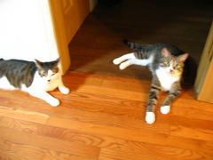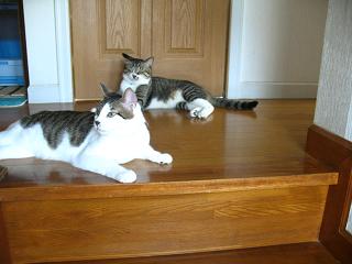 朝、写真が撮れなかったので、今日もボケボケばかり。18時半過ぎに家に戻ると、既にさくらい2ごう帰宅済み。そしてニャンスケ君は体半分だけ見せてお出迎え。夏はこの辺の場所に夕方以降よくいる。この男子の何がかわいいってやっぱこの手でしょ~。ゴミが落ちているのは見逃してクダサイ。ちょこんとこんな風に揃えていたりするとかなりカワイイヤツだぜ、と思ってしまう私。 にほんブログ村クリック ニャンコちゃんに10円ネズミを投げたら、飛びながら走っていった。そして通り過ぎてた(^o^;)昼間、ニャンスケ君が吸血鬼のようにニャンコちゃんの首を噛んでたという目撃情報あり。しかも2回もだよぉ~と言う家族に、見てたんならさっさと止めさせたら?と思う我。 昨日一口馬主になってる中で1番好きで期待している馬がまたまた勝ちまして、前回の配当金でもかなりワォ♪だったのにその上のレースで勝ったものだから昨日はもう浮かれまくりの私であった。。゜・。・o゜・。゜・。・o゜・。゜・。・o家の中の改造がイマイチ中途半端状態になっている。もうちょっと不要なものを処分せねば。どうもどの部屋もいまいちまとまりのないというか物が分別されずにあちこちの部屋にあるなぁーという感じ。例えば私の手芸関係用品&道具。例えば電気機器のケーブル関係とか。ネジとか釘とか工具関係とか。ちゃんと置き場所を1つに決めればもっとスペースができると思うんだけどなぁ~。
