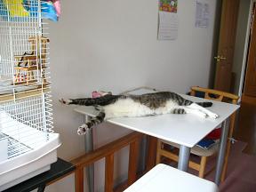 今朝のニャンスケ君。またしても幽霊風の手足。どうして狭いところに頭を突っ込むのだ(^o^;)それにしても既に人間は起きているのに猫らは寝てる…( ̄▽ ̄;)ニャンコちゃん、今日もクローゼットの中で寝ている=w=;そして下りて来ない。そしてさくらい3ごうと私が家を出る時もこんな感じで寝ていたョ。唯一ピンちゃんが『ピー』と言ってくれたのみ。まったくみんな、マイペース&クールに過ごしてるね(^o^)b我が家は平和ですなー(´▽`) にほんブログ村クリック 1月から自分の部屋でシステムベッドに寝ているさくらい3ごう。ピンちゃんが来てから寝る時は一緒に寝てもらっているので、ドアは閉めている。この時期、エアコンがなくて風の通りが悪くて、ましてや高いところで寝てたら全然涼しくなくて、テーブルの上に涼風機を乗せてONしても生ぬるい風ばかり、、、。ということで、小さな窓のところへピンちゃん及びケージ+ケージを置いてる机を移動し、ベッドに敷いていた布団を下におろして昨日から寝ることになった。ドアを開けれたらもっと風が通って涼しいだろうけど、ピンちゃんに間違えて『ふたり』の爪が当たったら大変なんで今のところドアは閉めてもらっている。近いうちに夜だけサンルーフの納戸で寝てもらうようにしよう。日中は今の時期さすがにあの納戸は窓を開けてても暑すぎるようだ。(冬は逆に最適なはず)我が家にエアコンは2台。下のエアコンは滅多にONしない。冷やす範囲が広くて不経済だから。逆に寝室は出窓が腐っててもう開けない宣言をして早2年。なので、寝る時はエアコン除湿&換気バンバン使っている。でも日中、午後になるとかなりもぁ~んな部屋になるのに、魚らは平気なのであろうか。昨日めだかの水槽掃除をし、他の水槽は水を半分入れ替えたが、水温はどの位過ぎたら危険状態であろうか。除湿ONする前は26度だったが。。。そんなこんなで明日は仕事帰りに有楽町でサマージャンボを買ってこよ~っ.+:。(ノ^∇^)ノ゚.+:。