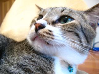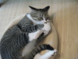 朝、1日6回ノルマのレッグスライダーに乗ろうとすると邪魔な男子が。微妙にやりにくいし(^o^;)2階のピンキー君ところの窓を少し広く開けようと階段をのぼるとここ2,3日階段のぼった付近でごろごろしてたりする女子。階段から落ちそうになってるし…( ̄▽ ̄;)体勢を立て直し再びごろごろしていたョ(´▽`) 邪魔者が来てびっくり顔の女子。。゜・。・o゜・。゜・。・o゜・。゜・。・oピンさんは相変わらず小松菜をよく食べる。でもすぐ小松菜がぐったりするので、食べてないときに引き上げて水に浸けたりして復活させまたあげたりする。久々にケィティexactをあげたらバクバク食べてた。たまにあげると食べたくなるものなのか。上の敷物にピントが合ってるようだし。゜・。・o゜・。゜・。・o゜・。゜・。・o今日の訪問者。黒猫君。ニャンスケ君、今日は尻尾たぬきにならず。黒猫君とはフレンドリーな関係なのか?あぁ雑草は21日に必ず!ベンチ下にいつものチョビ君。チョビ君と黒猫君ではチョビ君が強いらしい。(遠回りしていたし)。゜・。・o゜・。゜・。・o゜・。゜・。・o夕方、斜め右後ろで寝てる男子。午前中はいつもの季節の和菓子箱で寝てたけど、いつのまにか移動していた。普通に仰向け、普通にまっすぐになってるョ(^o^;)でもちょっとおかしいと気づいたのか、、、 あせって写したのでちょっとブレブレですが。で、普通に座りなおして大きくあくびを。一緒に住んでるとホントの姉弟じゃなくても非常に良く似たあくびをするもんだ。2年以上も一緒に住んでるんだから当たり前か?!しかも口だいぶピンちゃんに対抗してピンクだし(^o^;)口デカお化けみたいだ・・・ にほんブログ村クリック 暗い話しなので読まなくてもいいと思うけど、今日のモヤモヤの気持ち。3年前に猫が飼いたいと極秘に思い始めてから色々サイトで見ていたのだけど、その中のひとりの里親さんのブログで見かけた子猫らが可愛くて、誰も貰い手が居なかったら密かにお願いしようかと思っていた子らがいた。でもその子らはそれぞれ新しい家族の元へ行ってしまい、その後私も別の里親さんから『ふたり』をお迎えすることになったのだが、その気になっていた子ら、1匹は1年後に白血病(Felv)で、もう1匹もその約1年後の6月に同じく白血病で死んでしまった。そしてそのふたりが居た里親さんの元に居た可愛い茶猫(Felvキャリア)さんは1年と少し前に同じFelvキャリアの猫が居るお宅の家族になった。でも茶猫さんは2ヶ月前と少し前にマンションから誤って出てしまい、周囲での目撃情報はあるもののいまだ家に戻って来れていない。そんな中ここ2,3ヶ月で急激に具合の悪くなった長女的存在の先住猫さんが昨日永眠した。もし私が飼い主さんだったら今相当無気力になってしまっていることだろう。再度輸血をとタクシーに乗って病院に行く途中に飼い主さんの腕の中で、だったそう。今彼女のお宅ではもう1匹のWキャリア(確かFelvとエイズ)のオス猫がいるのだが、残されたその子も不憫でならない。車で行ける距離でもあるので、早朝か深夜、周辺を見て回ろうかと思っている。早く茶猫さんがあのお宅に戻ってくれれば嬉しいなぁ。それにしてもニャンコちゃんは誤って外に出てしまった茶猫さんのようなタイプ。何度かニャンスケ君が勝手に外に出てしまうこともあったが、彼は周囲にビビリながらも戻ってこれるタイプ。その逆のニャンコちゃんがホントに万が一外に出たらと思うとコワイコワイ。