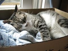 今日裏庭ベンチに居たのはチョビ君だった。最近、少し前に比べて全然おとなしくなった。あんなにうるさく鳴いていたのにねぇ~(´▽`)大人になったのかなぁ~。あ~ベンチの前の小さいながらも着実に成長している木、あのままでいいのか or 今のうちに移動した方がいいのか。。。午前中、北側の玄関付近の掃除と若干剪定。切ったオリーブの木に謎の物体が。最初、鳥の羽かと思ったら動いたので驚いた。こんなのが3匹程居た。おそらく蛾の子供かなぁ~?。゜・。・o゜・。゜・。・o゜・。゜・。・o相変わらず出窓から外を見る女子。イマイチ画像が暗めでメンゴメンゴそして一向に改装が進まないサンルーフのある納戸。右の窓、全然開かないし、暑いし、、、=w=;ここで作業してたら夕方涼しくなった頃にやろうとしていた裏庭の草取りパワーが消滅してしまった。ベッドでラジオを聴きながら本を読むこと数時間。その後家族&知り合いから電話が立て続けに来て、気づけば6時過ぎ。郵便局にも行けず、パスタ麺等を買い物にも行けず、草取りパワーも復活せず。。。土日に草取りだけはしておきたいが、果たして。。゜・。・o゜・。゜・。・o゜・。゜・。・o夕方、というか彼は最近1日の半分はここにいるんではないか。こっちもイマイチ画像が暗めでメンゴメンゴそして彼女は1日の半分弱は寝室のクローゼットの中で寝ている。今この時間も既に私より先に寝室で寝ちゃっている。カキカキした後、なぜかものすごく犬のような座り方をしてたョ。(足が超ガニ股だった) にほんブログ村クリック 本日さくらい2ごうは職場の方々と以前結婚して辞めたという方の為のお食事会をしている。夕方電話で『有楽町のミリオンビルってどこ?!有楽町駅の近所なんだけど、、、』って聞かれたけど、へ?!ミリオンビルなんてあったかなーと調べてたら薄々感づいてたんだけど、それは『マリオン』の間違いだったようで。。。でも2,3回聞きなおしたんだけどねー(^o^;)近いうちに読みたい本。おまけ。全く上の記事と関係ないけど、古いと言われたので、もう少し最近のものを(^o^;)全然11月の写真ゆえ季節感なしです。2004年11月21日葛西臨海公園にて