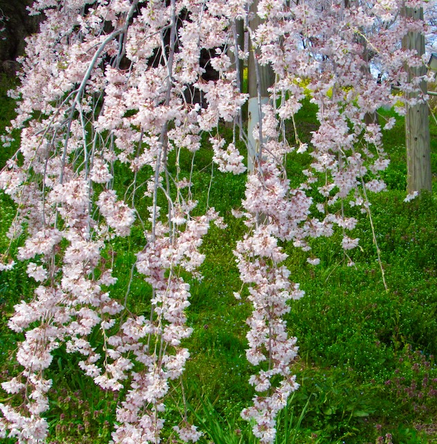 親友の家に着いた時には雨はようやく上がりました。手作りのパンで軽めのランチタイムご主人もご一緒に2時間ほど京都での思い出話に盛り上がりました。雨の心配が無くなったようなので私は、此処から「松島」へと向かいました。さて、松島へ着いたのは良いけれど駐車場がたくさんあってどうしましょう取り敢えず、車を停めたところから一番近い「お寺さん」に行きました。「円通院HP」門の前には枝垂れ桜が咲いていました。円通院には、そんなに桜は無くて入ってみてすぐに分かったことは此処は「紅葉のお寺」なのですね。小さいお寺でお隣が「瑞巌寺」ですからあまり観光客もいなくてひっそりとしていました。臨済宗妙心寺派のお寺です。東屋には桜が飾られていてちょっと素敵な空間でした。お庭を拝見してきっと紅葉の頃には境内が真っ赤に染まるのね〜などと思いながらの拝観をしました。池の脇のせせらぎには水芭蕉が咲いていました。桜の頃には桜ばかりでなく片栗の花、水芭蕉などがほぼ同時期に彩を添える‥春は誠に良いですね。此処は伊達家、伊達政宗公の嫡孫 光宗公の霊廟なのですね。お庭は「小堀遠州」の作と言われていますがなるほど、そう言われれば京都の風情もどこか感じられるお庭でした。枝垂れ桜を見上げてソメイヨシノの咲く庵を見つつお隣の「瑞巌寺」へと向かいます。御朱印も頂きましたよ。瑞巌寺は、桜よりも紅白の臥龍梅を見ることを期待瑞巌寺は明日へと続きます‥にほんブログ村にほんブログ村