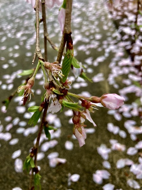 我が家の近くの通りは「桜並木」がいくつかあります。今日はその中の二箇所の桜満開ですが少し散り始めです。ガラス越しにも桜が咲いています。奥の方に見える山は「筑波山」です。1キロぐらい桜並木が続きます。途中にチャペルがあってそこにも桜が掛かるように咲いています。今朝はお天気が良くて異様に暖かな朝でした。我が家の庭の八重桜「東錦」も開花しました。ソメイヨシノが落下盛んや散り終えてしまった頃に「東錦」が満開になります。もう一つの桜並木は桜のトンネルのようになります。こちらも満開で一雨来れば散りそうです。我が家の子滝桜はだいぶ散ってしまい、葉桜になってきました。午後になってなんだか怪しい天気になりました。あっ、雷注意報が出ました。急に風が冷たくなって辺りが暗くなりましたよあーこれは一雨、絶対に来る寒くなって来ました。あっ、雨粒です。あ〜〜折角の桜が散りますね〜にほんブログ村にほんブログ村
