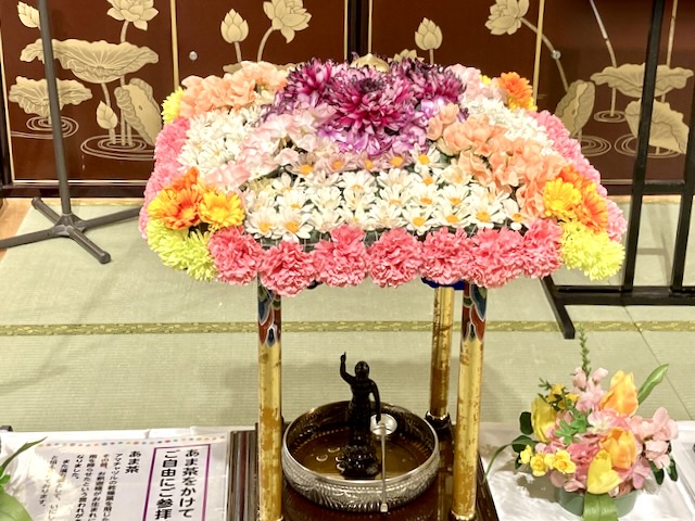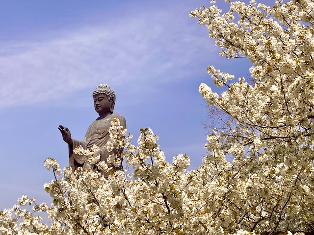 「灌仏会」の今日お釈迦さまのお誕生日です。花々に彩られた花御堂の中にいらっしゃる小さなお釈迦さまのお像に甘茶をかけます。これは、お釈迦さまが誕生された際、天から神々が降りてきて祝福のために甘露の水を注いだという経典の説示に由来しています。お釈迦さまは誠に良い季節にお生まれになりました。私も今日は「花祭り」を兼ねて大きな仏像に会いにやってきました。お釈迦さまではなく阿弥陀様ですが本日は、どちらさまの寺社でも「灌仏会」が行われていると思います。桜は満開を過ぎてはらはらとハート型の花びらを散らしておりました。極楽浄土のように美しい庭園を持つお寺です。大島桜も満開でした。こちらのお寺への入り口には大きな「花まつり」の額が飾り付けられていました。金箔、金箔で豪華過ぎるくらいですねーここは、「牛久大仏」世界一背の高い120メートルもある大仏様です。桜満開の花風に守られて大仏様はスクッと立っておられます。明日は、ゆっくりと牛久大仏の桜とお胎内をUPしますね。しかし、こんなに桜が綺麗だとは思いませんでした。明日へつづくにほんブログ村にほんブログ村