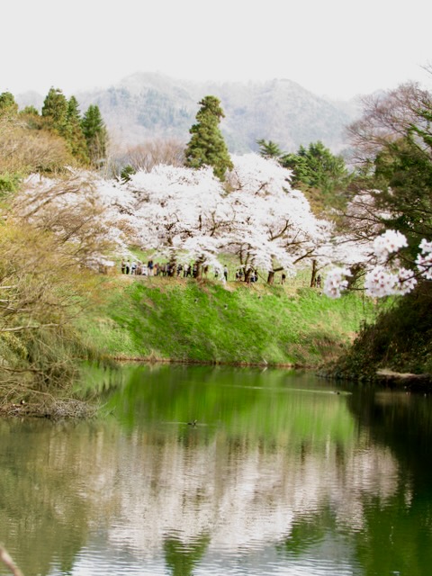 「伊佐美神社 HP」とても歴史の古い神社です。祭神は次の4柱で「伊弉諾尊」「伊弉冉尊」「大毘古命 」「建沼河別命」です。「伊佐須美大神」「伊佐須美大明神」に総称されています。枝垂れ桜が咲いていました。ほんの7〜8分前に見ていた宮川の千本桜が遠くにあるように感じた神域でした。静謐でしっとりと濡れているかのような神社です。御朱印を頂き鳥居の前に広がる池の周りの桜の美しいこと‥この大きな桜の向こう側が千本桜なんて分かっていてもなんというか‥伊佐美神社の桜は完全に別のものでした。池の水に映る桜もイイですね〜だんだん薄暗くなってきました。桜をまだまだ見ていたいけれど帰らなくてはいけません。おっと忘れるところでした伊佐美神社の御神木会津五代桜の一つ。「薄墨桜」です。花びらは八重に一重が交わり、薄墨を含んだ白色で次第に紅色を帯び、終わりには中心部は濃い紅色となる。学名はアイヅウスズミ。園芸種の薄墨とは異なる。会津藩最後の藩主松平容保の歌碑もある。「世の人の 心や深く 染めぬらん うすずみ桜あかぬ色香に」と、書いてありました。暮れなずんでくるとまたその景色もイイですね〜とは言え‥9時ごろには家に辿り着きたいですねー我が家までは大凡260キロもあります。車に戻って深呼吸して運転再開です。今年も福島の桜は本当に美しかったですよ。2025年は、京都を皮切りに東京、地元、宮城、福島とどれもこれも美しい桜たちに出迎えて頂きました。お天気に翻弄されもしましたがそれもまた好い想い出です。では、会津若松インターへと車を進めます。「令和の米不足‥」米どころの福島でももう田植えの準備万端整えてます。日本全国「桜」は美しいでも、北の桜は京(みやこ)の桜よりもずっとずっと美しいこれで、令和7年(2025年)の桜人の「桜紀行」は終了です。長い期間、ありがとうございました明日からは桜の追っかけをしていた間の諸々を書くつもりです。にほんブログ村にほんブログ村