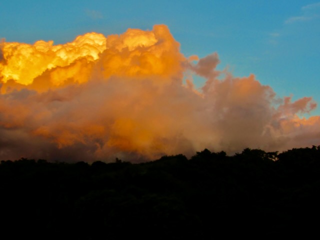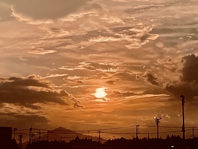 夕闇迫る頃まるで燃えているような空に出会う‥夕日が積乱雲にあたっているとこんな濃い目のオレンジ色になる。ほんの少しの時間で空の景色はまた変わる。まだ、燃えている。色が刻々と変わってゆく空。太陽は真っ赤に燃えているのをちょっと間だけあ〜〜そうだったと思う夕闇迫る時間帯。束の間の空が燃えるショータイムでした。にほんブログ村