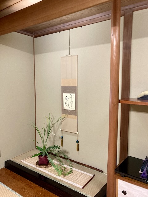 お盆も無事に終わりいつもの広間になりました。室礼も少し秋風を感じるように夏の思い出を残しつつ全体的に模様替えです。お盆が終わっても秋の気配が全く感じられない2025年。庭の花々の花も葉も枯れてしまいがちですが主治医の言う通りに庭仕事は熱中症対策のため手をつけていないので荒れ放題の狭庭です花は、萩と藪茗荷と芒。色紙は「千里同風」遠方にいる家族や友人などや世界中の人々を思うと、距離的な疎遠に不安を感じることがあると思いますが、「千里同風」気持ちは通じている‥誰もが「平和で穏やかに」を望んでいます。脇床には夏の貝殻を少し残して‥黒竹の文箱干菓子を入れる菓子鉢織部の皿脇床も全部入れ替えました。こうして、実際は猛暑ですがいくらかでも秋を感じてみたい‥そう思っても‥しかし暑い久しぶりに冷たいお抹茶を点てました。お菓子は、松本の「真味糖 」ちょっと甘さが強いけれど濃い目に点てたお冷茶とバランスが良かったみたいで美味しかったまだまだ、エアコンは1日中付けっ放しの8月も下旬になります。にほんブログ村にほんブログ村