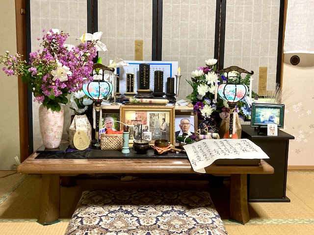 お盆の用意を済ませました。毎年、盆提灯やらいろいろな盆棚の使うものを入れたり出したりよくやっている私はエラいじゃんなんて思いながら、お位牌をピカピカに磨いたり火立てや香炉の灰を篩にかけて余分なものを取ったり小まめに飾り付けしています。盆飾りは毎年、同じではありません。それは、ちょうど、「お雛様飾り」と同じで少し趣向を変えて飾っています。そして、こんな時に便利なのが自分のBlogです。必ず、その年、その年の飾り付けをUPしているので遡って見ることが出来ます。そこから、ちょっと何枚かの写真を拾い上げて2025年の盆飾りの参考にします。こんな風に飾ったのね〜〜禊萩の花の写真を見つけた時あ〜〜これは、あそこで撮った写真ね〜って思い出します。桔梗の花が咲いていたこともあったのね〜今は、桔梗は自然消滅してしまいました。父が逝って母が逝って伯父や伯母が逝って両親以外のお位牌も私が守っています。これから、お預かりしているお位牌に書かれた戒名を半紙に書いて明日へのお出迎えと致します。小雨が降ってきて気温が30度を割り込みました。涼しいお盆になると良いのだけどどうやら、そうはいかないみたいですね。祖先があるから今の自分が居る‥そう思うと、この時期に遊び歩いている人たちはいくら「夏休み」とは言えあまり良いとは思えないのです。にほんブログ村