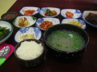 私は韓国料理が大好きです。チャングムの誓いにもはまりました(笑ある日もご多望に漏れず、韓国料理が食べたくなりました。そういえば昔彼女と一緒にソウル行ったぁ…。あのおいしかった韓定食また食べたいなぁ…。ってな事でソウルに行ってきました。9月某日成田空港を出発し国際線ながら短いフライトで到着。「プサンネオソオシプシヨ~」あれ?釜山にきちゃった(笑直接ソウルに入るのも在り来りなので釜山から北上する事に。釜山は韓国随一の港町です。もちろん海鮮料理がとってもおいしい!宿を確保し休憩も早々に腹ごしらえ。腹が減っては休憩はできぬ!です。韓国では料理を注文すると五倍位の付け合せが出てきます(笑そしてメインのシジミ汁。あー!二日酔いに効きそう!おいしい!寝坊して朝ごはんを抜いた私の胃を労わってくれます♪おいしーよー!隣のテーブルに日本人のおっちゃんが同じ物食ってます。「なんや、兄ちゃん一人か?」韓国でもかよ(T∀T;)チャングム!→