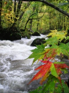 問 土砂降りの中、温泉出てすぐサイクリングするとどうなる?答 風邪をひきます。ええ、体を張って体験してみたのでこの答えは間違いない!ものの見事湯冷めし、風邪をひきました。まぁ、目に見えてた事なんだけどね。それでも紅葉サイクリングに繰り出しました、私。残念ながら奥入瀬はまだまだ葉に色が付き始めた段階。不思議な事に真っ赤に染まった山よりところどころ紅いのもまた良し。これって日本人以外にはわからない感覚なんじゃないかなぁ…。多分○メリカ人とかだと理解できな美だと思う。別な国籍で、別な文化圏で育てば日本人に理解できない美とかもあるんだろうけど、こうゆうワビサビ(?)を感じる美に遭遇した時は本当に日本人である事をうれしく思う。余談だが海外にいた頃ワビサビをワサビの種類と勘違いしていた。静かな風邪になびく葉の音をバックに川のせせらぎが聞こえる。そんな中、朱色に染まり掛けた葉を眺める。マイナスイオンを体いっぱいに浴び、心を癒す。そうしていると不思議と自分の悩み事が馬鹿らしく思える。そしてブログの自分のネタも(笑何ゆうてんねん→