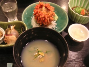 ちょっと前の話になりますが…。最近いつも国外出張と旅行ばかりなので国内を回りたくなりました。時は十月下旬。どこに行こうかなぁ~。1, 温泉2, 郷土料理3, 紅葉私の頭に浮かんだのはこれ。疲れを癒すべく、温泉は必須です。食い意地の張ってる私に郷土料理は必須です。そして何よりも今は紅葉シーズン!そんな訳でタイトルどおり、青森に行ってきました。時間的に到着したのはもう夕方だったので早速ご飯を食べに。やっぱりここは郷土料理でしょう!で、食べたのがこれ。一番美味しかったのが手前のイチゴ煮かな?別に果物のイチゴを煮てる訳じゃないんですよ!アワビの上にウニを乗っけたなんとも贅沢な料理です。そのウニが野苺に見えるからこの名前が付いたんだとか。なんともゴージャスなコンビネーションですが、下品な味ではなく、とても繊細(なんか俺がつかう言葉じゃないっすよね)なお味。で他に色々と小皿が出てきました。右奥にあるのがナマコだった気がする…。ナマコだったかはっきり覚えてないけどコリコリしてて美味しい。ああ、なんともいい加減な記憶力(笑で、一番目を引くのがど真ん中のあれ。変なトゲトゲしたのが出てるあの貝。あれ、一応貝なんですよ!かない見た目はグロテスクなんですが、海産物の法則としてグロテスクな物ほどうまい!と思っている私。勇気を出して食べてみました。ムニュムニュ。…。……。………。微妙(T∀T;)お店の人は「おいしいでしょ?」と声をかけてくる。「ええ…」多分私、顔引きつってましたね(笑おいしい不味いとかじゃなく、味がない?なんかかなり水っぽいんですよ。青森に行ったら是非食べてみてください。ホヤ貝って言います。オススメしませんが(笑ホヤ貝→