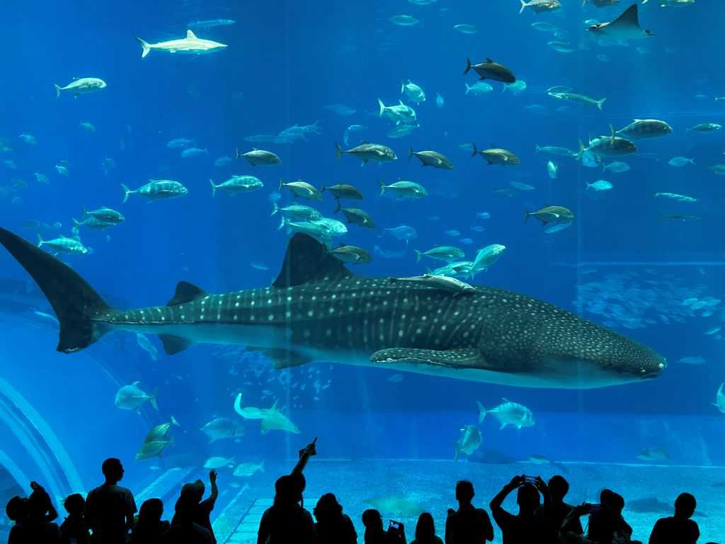 ◇2025年8月12日◇沖縄美ら海水族館◇ナポレオンフィッシュとは比べもにならないほど大きな魚がいました。ジンベイザメです。たくさんの人が水槽に張り付いて見ています。マンタも大きいですが・・・悠然と泳ぐジンベイザメには迫力があって一番人気なのが分かります。(続く)クリックしていただけますと嬉しいです!