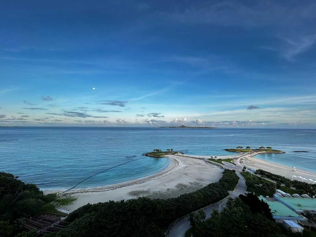 ◇2025年8月11日◇沖縄◇午前6時過ぎ、ホテルのベランダから外の景色を眺めました。遠くに伊江島が見えます。ホテル前のビーチが綺麗でも、この日は海に入る計画は立てていません。あるテーマパークにレンタカーで行く予定でした。海水浴ではないので、あまり暑いと活動するには厳しいかな。さて、そのテーマパークとは?(続く)クリックしていただけますと嬉しいです!