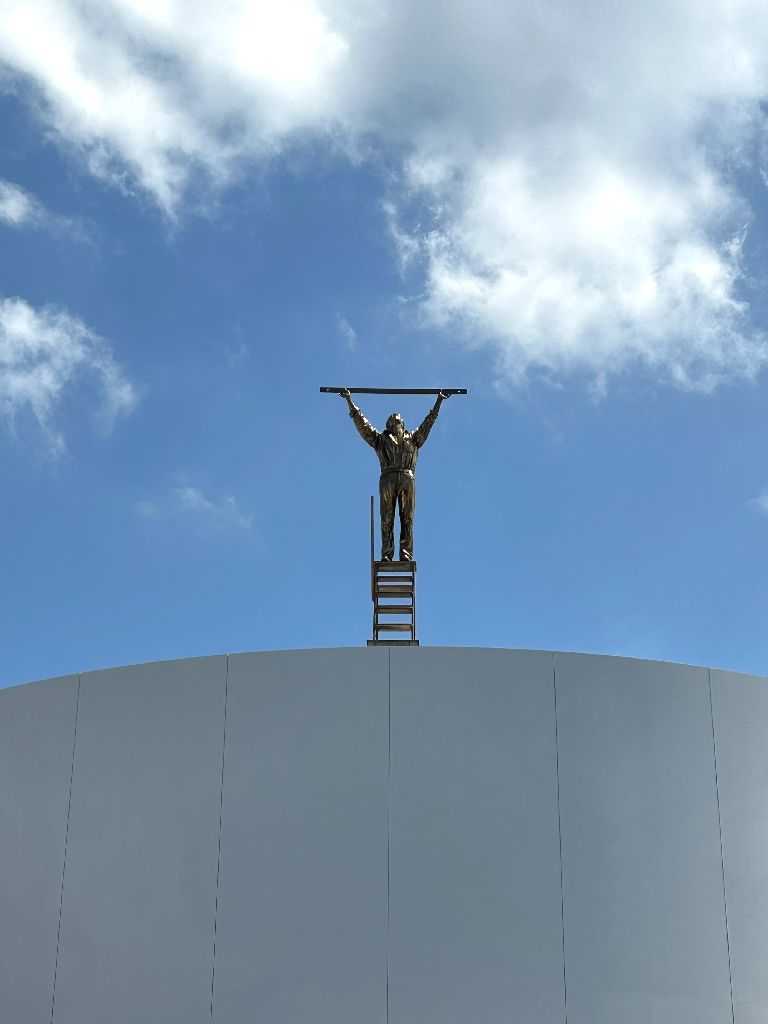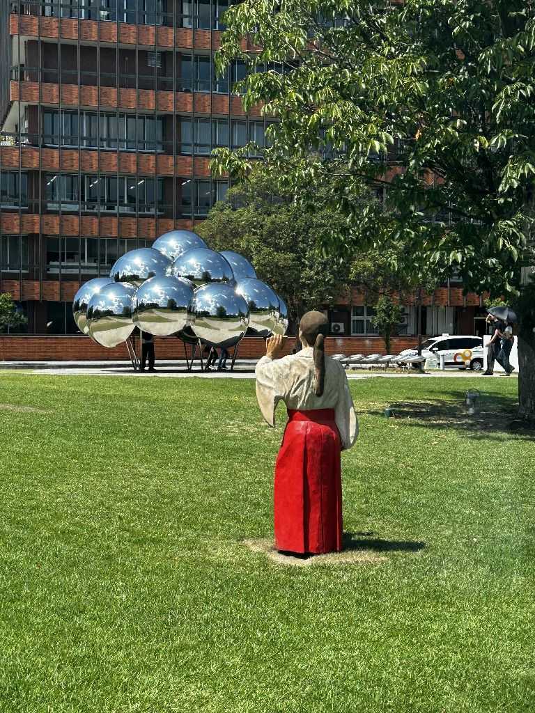 ◇2025年8月31日◇金沢21世紀美術館◇金沢21世紀美術館の恒久展示作品、ヤン・ファーブル作「雲を測る男」です。入館したばかりの時間には雲がなかったのですが、雲が現れてきました。これまで私は雲を測る男を2回見ていますが、この日、雲を測る男が雲を測るところを初めて見たのです。この通路はパトリック・ブラン作の「緑の橋」です。「緑の橋」が作品であることを知らずにいました。(続く)クリックしていただけますと嬉しいです!