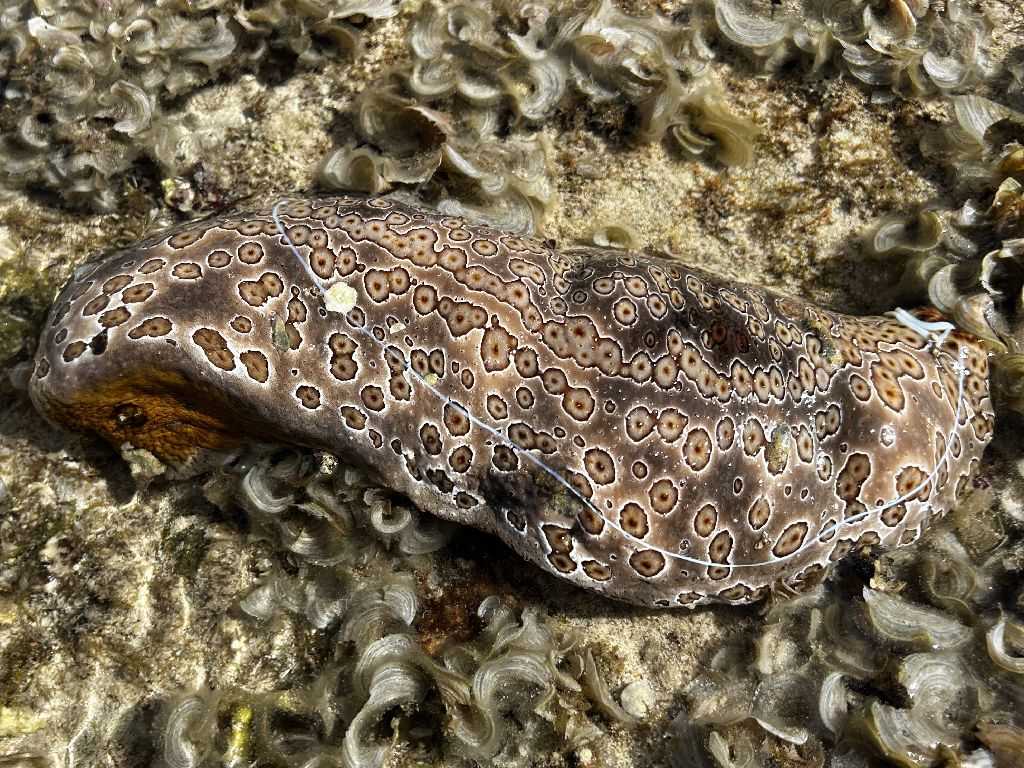 ◇2025年8月12日◇沖縄 備瀬崎海岸◇蛙太郎が大きいジャノメナマコを捕ってきました。キュビエ器官を出している状態のジャノメナマコは気味が悪いので、持ってこないで欲しかったのに・・・ジャノメナマコは、そこら中で見つけられますからポイントになりません。私はツノダシを見つけると、また追いかけてしまいました。備瀬崎海岸で珍しい生き物をずいぶんたくさん見つけました。「おーい、もう帰るよ。戻って来い。」と大声で2人を呼びました。Saltyfish家の生き物捕り競争、もうこの辺で終了とします。今回の生き物捕り競争は、序盤で蛙次郎がリードしたものの、クモガイで蛙太郎が逆転しましたが・・・・また、どこかで生き物捕り競争を開催できることを祈念して、引き分けにしたいと思います。(続く)クリックしていただけますと嬉しいです!