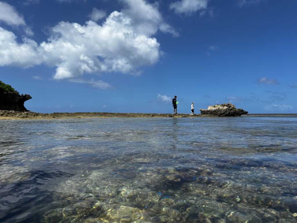 ◇2025年8月12日◇沖縄 備瀬崎海岸◇沖縄家族旅行 3日目の午後、ようやく海に入ることになりました。海に入ると言っても、浅い場所でシュノーケリングして海の生き物と戯れるだけで、大げさなものではないのです。それでも楽しい・・・こんなに透明!ここはホテルから車で5分ほどのところにある備瀬崎海岸。潮が引いている時間帯でしたので、海水が膝ぐらいの浅瀬で美ら海水族館で見たのと同じような熱帯魚をたくさん見ることができました。(続く)クリックしていただけますと嬉しいです!