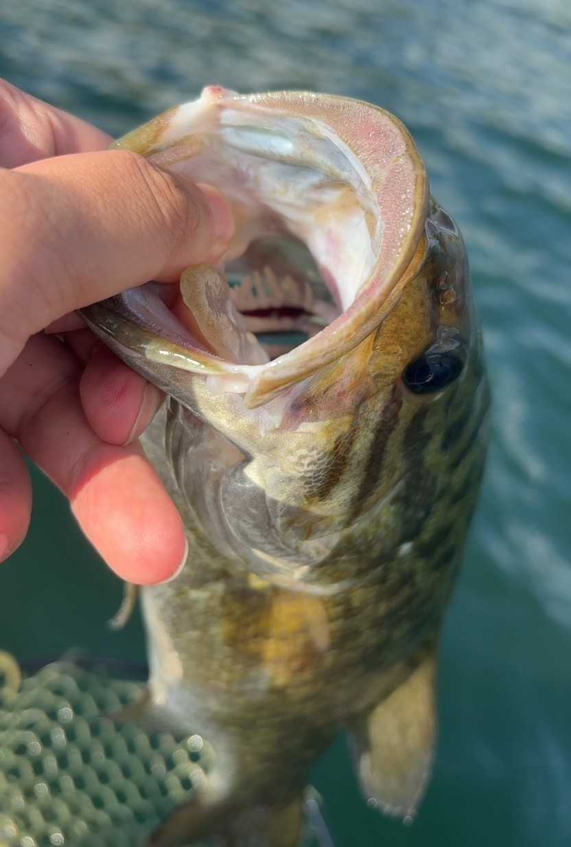 これで8匹目はスモールマウスバスでした。かなり口が大きい・・・