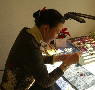 今日は教室初め昨年からのご予約をいただいたNさまと初めてお会いしましたとてもパワーのある素敵なお方 はじめてお会いするとき・・・ほんとにドキドキするのですが不思議なほどに教室をopenして今まで出会う人・・・人・・・・波長があうんですね~Nさまがおっしゃられました「アイリスさんで作品を見たときとてもパワーを感じたんですと・・・」とても嬉しいお言葉ですねキラキラと輝くビーズにはほんと不思議な力がありますね。また天然石・・・パワーを感じます。そしてビーズステッチは一針、一針・・・と時間をかけて作り上げます。波動が宿るんでしょうね。Nさま体験作品できあがり 今年は素晴らしい年となりそうですNさまより伊勢神宮のお土産らくがん、と可愛らしい鈴のお守りをいただきましたとても美味しいらくがんだそうです。なんだかもったいなくて・・まだ手がつけれません。もう少し眺めてから頂きますねはじめてお会いするのにこのようなお心遣いほんとにありがとうございました新年早々素晴らしいパワーをいただきましたこれからもどうぞよろしくお願い致しますまた、とても器用でいらっしゃるお嬢さんともぜひ一度いらしてくださいね(アイリスカフェさんのVivoチラシ横にお嬢さんが書かれた絵が飾られています年末にアイリスさんへお伺いしたときに拝見しておりました。素晴らしい才能を感じました)クリスマスじゃなくても使えるデザインですね作品はさくさくっと完成~ありがとうございました ランキングに参加しています