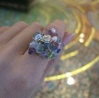 天然石ふんだんに使っておりますバロックパール、シェル、スワロアクセントにオレンジチェコビーズ。この写真ではわかりにくいんですが。3っつハートの天然石が微妙なグラデーションカラーこれがまた可愛いんです。ボリュームのあるリングですが付けやすいですよ。こちらと同じ作り方をしています。 お花畑にちょうちょ~にほんブログ村