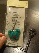 今日も一日とっても充実した日でした花のパリッ子さんのレッスン報告はまた後日に~なぜかっていいますと・・・あす受講されるお方もいますしブログにupするのは後日にしますね。すご~く楽しいレッスンでしたあ~やっぱりビーズとお花って通じるものがありますね。どちらもやはり私にとってかかせません本日もとっても勉強になりました。パリッ子さんいつも素敵な作品をご提供いただいてありがとうございますさてさて・・・・話かわりますが。やっとイーニーさんにいくことができましたよコチラミクシィでお友達のモモさんがビーズ作家さんとして作品を販売されています。お聞きしたのがちょうど1年ぐらい前になるのかな・・・わたしは古川橋にはパリッ子さんのレッスンのときしか行かないのでレッスンにあわせてランチ行くぞーといつも思っていたんです。。しかし場所をちゃんと調べてなかったりでタイミングを逃して。。。やっと本日!ぶじお店訪問できましたー幸い今夜は旦那様は飲み会なので夕飯つくらないでよいし~昼と夜兼用・・・といった感じになりました。4時半ごろにお店へ煮込みハンバーグいただきましたふわっ~とボリューム大たまたま店内は私ひとりとなったのでオーナーさまといろいろとお話をさせていただきました。実は・・・とてもおめでたい日~オーナーさまはっぴ~ば~すディだったのですね~おめでたい日にちょうど来店できてとてもラッキでした。おめでとうございまーす「カフェと手作り雑貨店eenie」さんブログお誕生日のこと記載されていましたね~コチラお料理の写真はいきなり撮るのって失礼かな~と思ったので今日はございません。。。食後・・・ミニケーキアイスクリームホットラテもいただきましたよ。とても美味しくいただきましたごちそうさまでした店内の雑貨をいろいろと拝見させていただきましたレトロなカギ800円(ビーズステッチまたはビーズクロッシェの手法をつかって素敵な作品となりそーですわくわく)フェルトかえるちゃん300円(ちょっと一目ぼれしちゃいました)オーナーさん手作りクッキー100円×2 このかえるちゃん、表情がほんと可愛い
