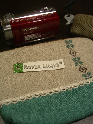 デニム風の生地に白い糸?だったかなクロスステッチ
