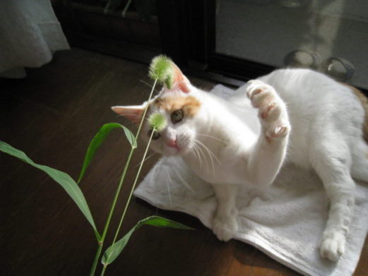 買い物に出て「ネコじゃらし」摘んできました はなみは初めての「ネコじゃらし」興味津々です いっぱい遊んでくれました