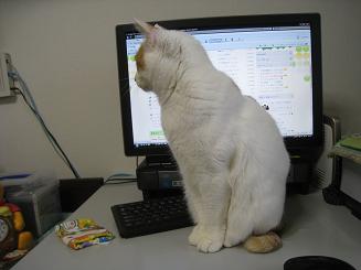 私がPCに向かうとやって来るんです 「見えないからどいてね」って言っても知らんぷり 仕方ないのでお引き取り願ったら・・・ ぬいぐるみが置いて有る所に乗ってKittyちゃんを・・・ はなみが可愛いの分かったから、転がさないでね