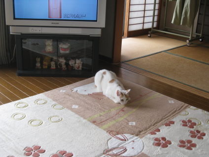 夜8時過ぎの事 「世界の果てまでイッテQ」を見てたら くーがTVの前に来てじっと見てました 大きな声と極楽鳥が気になったのかしら・・・ 見てるくーちゃんが可愛かったのでパチリ