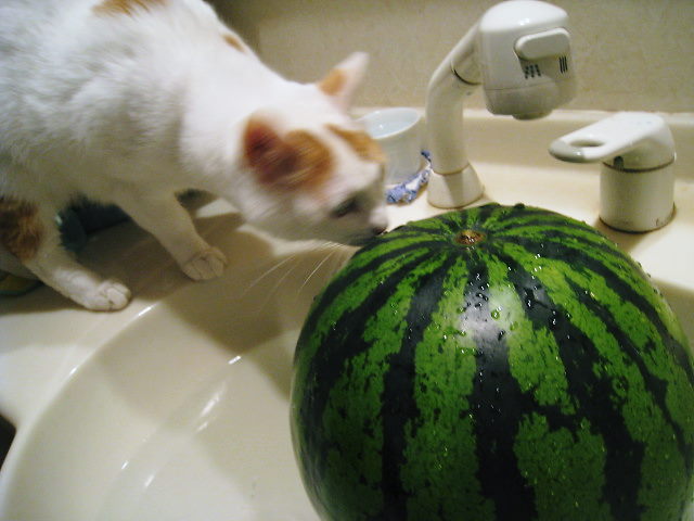 スイカを買ってきました 私は「まだ早いんじゃない」って言ったのに 買ってきましたよ 「ううぅ~ん70点(甘さ)かな」ですって 私もそう思いました、だから言ったのに やっぱりやって来た はなみです