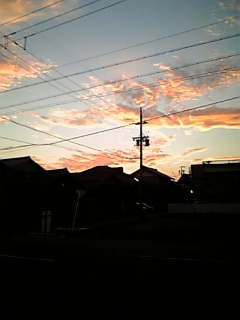 相変わらず暑い日が続いていますが綺麗な茜空♪ 車で移動中に写したからブレてる、ブレてる! (^_^;)