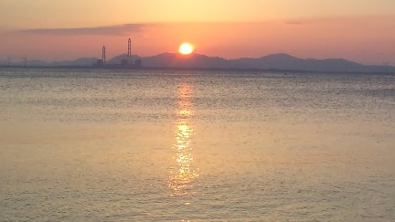 本日のラン 12キロ 1月の累計 207キロ 土曜日に金山から篠島までマラニックの予定が河和までになってしまい、僕の足力が落ちているのを思い知らされてしまいました。皆さんすみません。 ということで、このマラニック金山から河和までの47キロでした。 今日はいつものように午前中5キロのウオーキング、暖かくて気持ちよかった。午後からランに出ました。途中足がつったような感じでしたが、そのままゆっくり走り続け、なんとか予定通り12キロを走り切りました。 ただ残念なことに今日はフイットネスがお休みで、お風呂は湯の山温泉に行きました。 今日の写真は篠島マラニックの写真ですよ 日曜日朝は晴れましたね・・知多半島から上がる太陽はきれいでしたね 園ちゃんと撮りましたよ・・これからもお願いです。 ホテルで、ちいちゃんと銀恋を歌いましたよ・・楽しかったですね