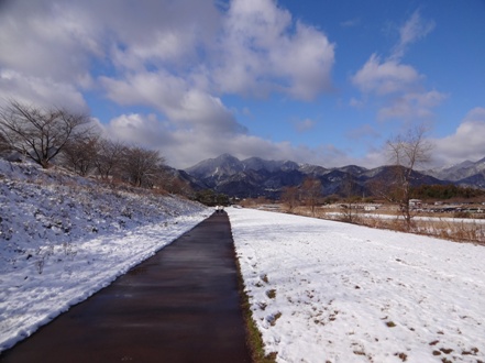 本日のラン 12キロ 1月の累計 121キロ 午前中、いつものように晴れているとウオーキングに出ると、あらあ・・雪がちらちらしてきました。まあ雨じゃないのでとウオーキングをすることに、しばらく歩くとそのちらちらの雪もやみちょっと寒いけど快適に歩きました。5キロほどでした 午後、ランに出ました。昨日雨で休んだので、最初少しえらかったけどだんだん走れるようになりました。風が強く山から下りてくるときには向かい風になり大変でした。菰野町では午後ランのときも歩いている人がいっぱいすれ違いました。 鈴鹿の山も昨夜の雪が白く降り積もっていました。まだ僕らの町までは降りてこないですね今日のちらちら程度です。このままで行ってほしいな・・