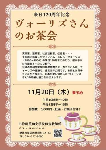 ヴォーリズ建築の「静岡英和女学院旧宣教師館ミス・カニンハム」で奥田美紀さんのお茶会…