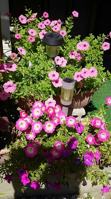 我が家の花今年は沢山植えませんでした。サフィーニアは買い物に行ったのが遅かったので、終わってしまって少しだけ。いつもは秋まで楽しめます。