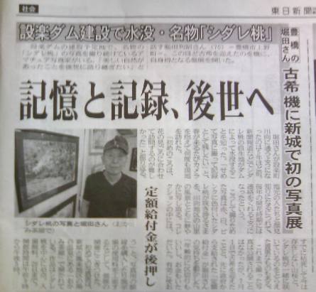 昨日の日記で紹介しました堀田さんの写真展が本日(7月8日)の「東日新聞」に紹介されました!スゴイ!