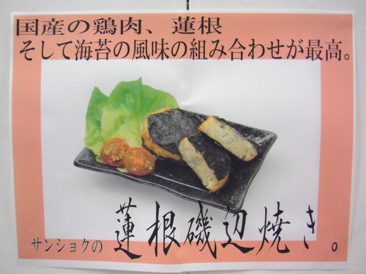 「あいちゃん」といってもアイドル系のイベントではありません。主催されています「あいち生協」様とは長いお付き合いがあり、サンショクは第2回から参加させていただいているとのことです。今回は「蓮根磯辺焼き」と「焼き芋」を出展いたしました。蓮根磯辺焼きは鶏つくねの中にダイスカットした蓮根が混ぜ込んであり、それを海苔で挟んだ商品です。作ったメーカーの人間が言うのもなんですが「めちゃめちゃ美味しいです!」お醤油ベースのお味が付いており「おつまみに最高です!」揚げてもよし、焼いてもよしの万能選手ですが、今回は別の食べ方の提案もしてみました。その中でもおススメは「蓮根磯辺焼きと紅しょうがのかき揚げ」です!磯辺焼きの蓮根のサクサク感と海苔の風味、更に紅しょうがの味が合わさった逸品です。もう一点の「焼き芋」は、お芋を主原料として色々な商品を作っているサンショクが製造する「究極のお芋商品」。だって原料そのものが商品の良し悪しにダイレクトに反映されてしまうんです。茨城産の紅あずま芋をじっくり焼き上げた「焼き芋」はしっとりとした食感が特徴です。袋に入れたまま調理できる「レンジでポン」で包装されていますが、おススメは自然解凍。夏場は冷たいスイーツとしてもお楽しみいただけますよ。