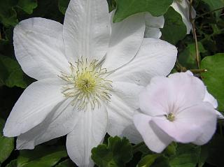 5月の初めに パソがネットに繋がらなくなって すぐに直して貰ったけど 明日更新すればいいか・・・が 今日に ご心配かけた みなさん私たちも ワンズもニャンズもみな元気です メール 電話ありがとうございました 5月に咲いた花は 画像日記に載せました 置く場所が狭く 限られたスペースなので そんなに種類は多くないですが 薔薇 5種類 連休の間に咲きました 4月に降った雪で 折れてしまった枝もぐんぐん伸びてました 後から開花 今年は二度楽しめます テッセンと地植えのゼラニュームのコラボ ゼラニュームは花が沢山咲き始めました 赤いゼラニュームも植えてありますが 白に負けて 下の方で咲いています株も小さいです 鉢植えの ゼラニュームの方が花付きが良く 雨に当たらなく場所もいいのか ずーっと咲いています 去年挿し芽したローズゼラニュームも 鉢に植えっぱなしの ベルフラワー そのほかにも 姫ウツギ 宿根デージー クレマチス オーストラリアンブルーベルズなど 咲きましたよ 画像日記 載せるの大変でした 溜めるとだめですね 暇な時間にでも 見てくださいね