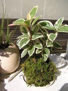 レイクタウン MORI2階 JTBカルチャー教室今月はコケ玉作り苗は斑入りヤブコウジ 常緑低木ヤブコウジ科ヤブコウジ属アメリカヅタ(バリエガーター)ブドウ科ツタ属ハイゴケ・ケト土・夢想・黒糸今回はハイゴケに夢想をまぜて使用夢想は枝屋さんのオンラインショップでも購入出来ます 斑入りヤブコウジのコケ玉 アメリカヅタのコケ玉この他に 2年前に作ったポトスのコケ玉を・・さんが持って来てくれたので植え替え株分けしてくれたのでみんなもポトスのミニコケ玉を作る事が出来ました・・さんありがとうございます2年前は ミズゴケを使たのですがハイゴケの方が作るのに楽でした(ミズゴケはポロポロしてまとまりにくい)コケ玉の作り方はいろいろあります気になる方は調べてみてね2年前の第3回越谷ヨークカルチャー(コケ玉作り)の時の資料です