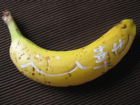昨日 『もつなべ宿 夢蔵』でもらったお土産幸せバナナこれを食べると「幸せ」になるんだっていや、そりゃ、単にバナナに落書きがされてるだけですよでも、そういう遊びゴゴロがイイ私は『言霊-ことだま-』って結構好きな人だから楽しい~ 幸せ~ って言ってたら楽しい事も、幸せな事も、向こうからやって来るって思える今日の朝食は、この「幸せばなな」でした