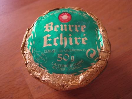 ブログ巡りをしていたら、気になったものが「エシレ」というブランドのバターフランス産の超高級発酵バターで、英国王室、フランス大統領府やモナコ王室等の御用達一流三ツ星レストランのシェフも愛用との代物フレンチも食べたりするけど、お恥ずかしながら、知りませんでしたそれを、近所の高級食材を置いてるスーパーで発見で、賞味期限が近かった為、半額で売られてたので、迷わずGetま、半額とは言っても、通常の国産バターとは全く金額が違いますがで、ドンクで買ったバケットを軽~くトーストして・・・おぉー 美味しいやんっホテルで食べるバター、お店で食べるバターだよっ美味しいけど~普段使いには、ちょっと贅沢ですね楽天でも売ってました誰か、贈ってくれないかしら・・・ふわふわもちもちの新食感☆フランス産最高級エシレバターを100%使用しました。フランス産最高級エシレバターを100%使った!北新食パンセット【お中元2008’】【4個セット!】エシレバター 有塩 30g【お中元2008限定】フランスから届く伝統の発酵バターエシレバターギフトセット 250g×2個(有塩、無塩各1個)【送料込ギフト】フランスから届く伝統の発酵バターエシレバターギフトセット50g×8個(有塩4個、無塩4個)&伝統磁器リモージュ焼『ロワイヤルリモージュ』のかわいいココット付きセット【送料込ギフト】